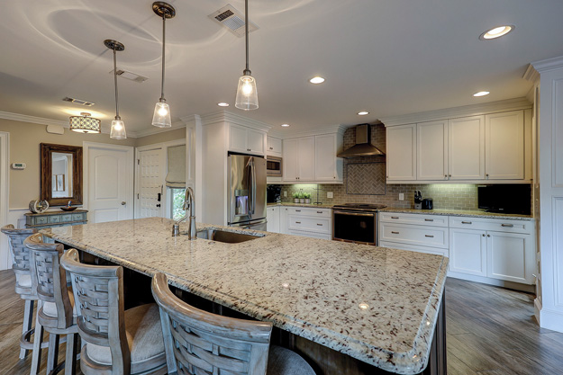 counter/island with granite, stainless appliances, decorator