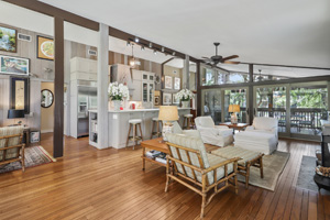 Pines is elevated with large screen porch and wraparound