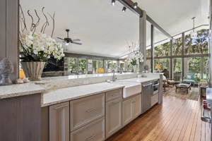 state of the art kitchen opens to the living areas.